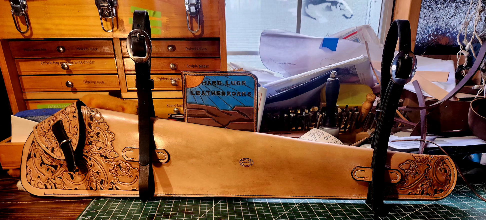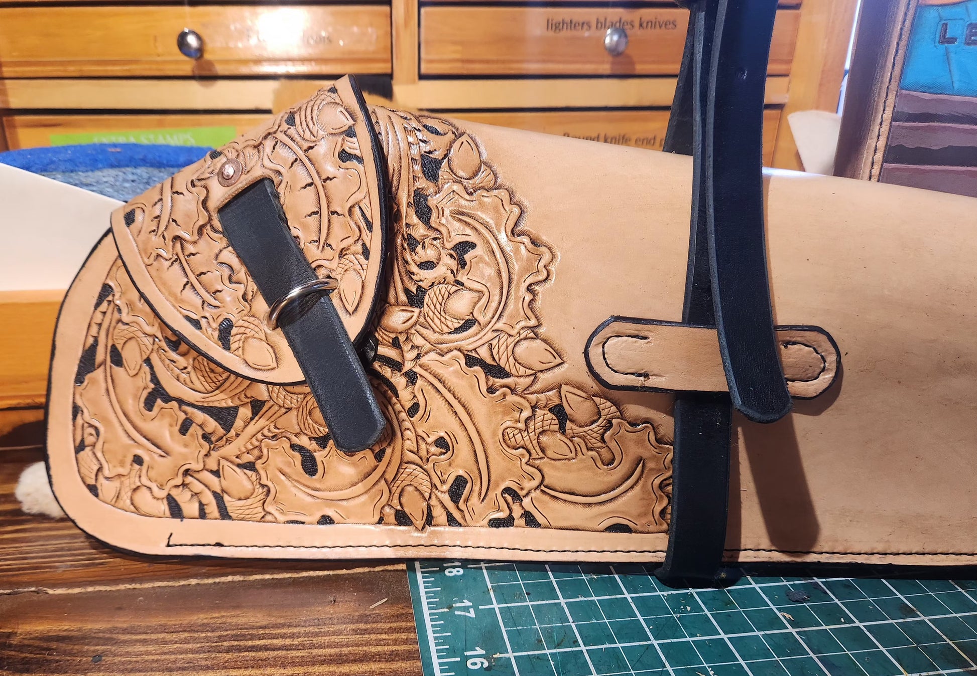This is a gorgeous gun scabbard. Hand tooled and made from the best materials. It is as tough as it is pretty.