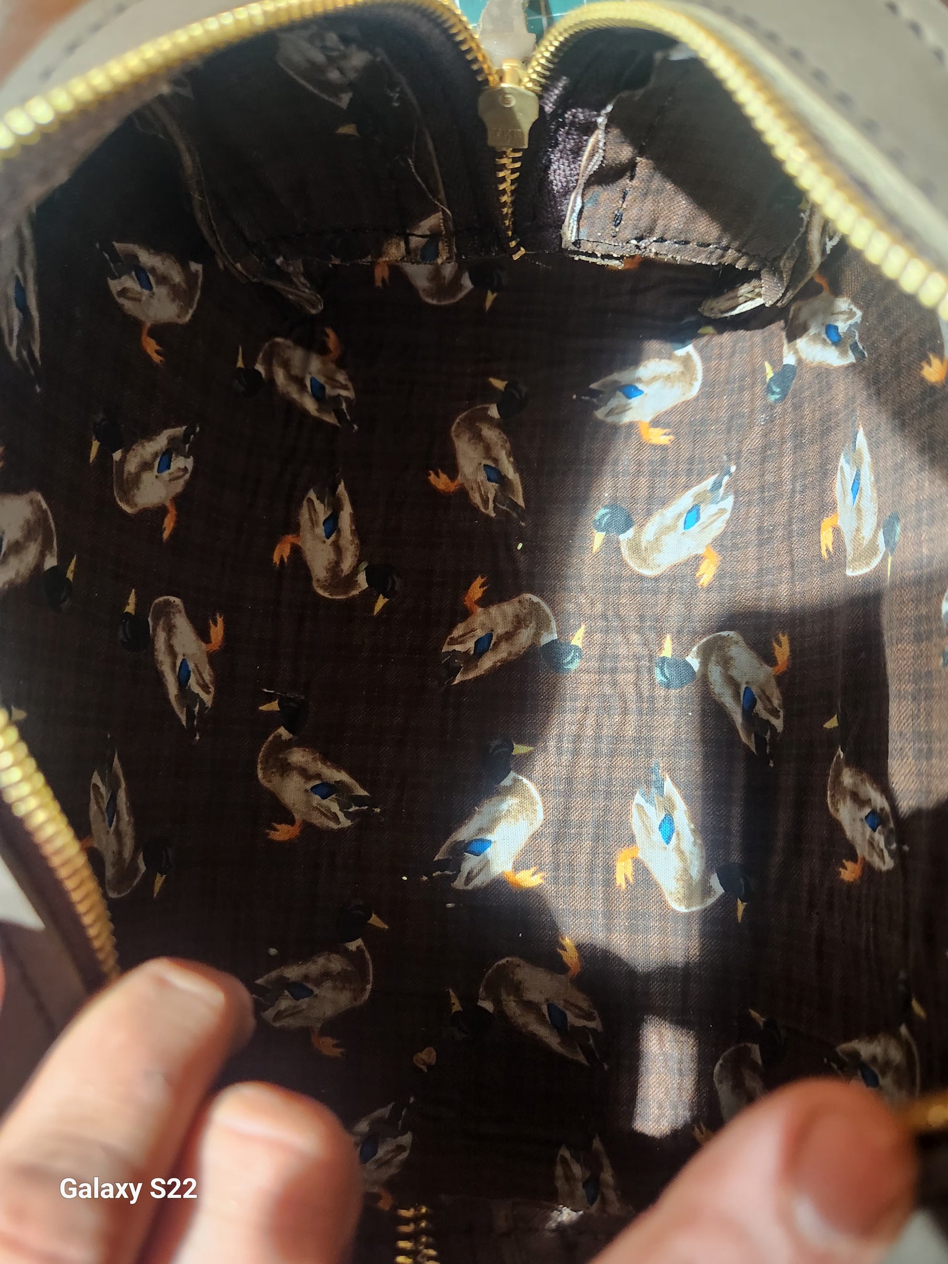 Leather dopp kit. Made from 5-6 oz chap leather. Dark olive green accents. Heavy duty zipper. Lined with a duck printed fabric.